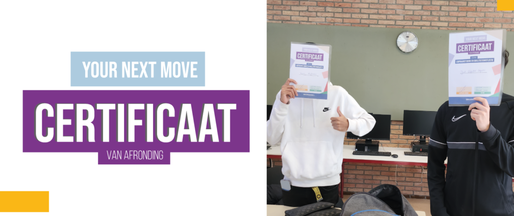 Na het voltooien van een leerpad (4 gastlessen) ontvangen de studenten een YourNextMove-certificaat.